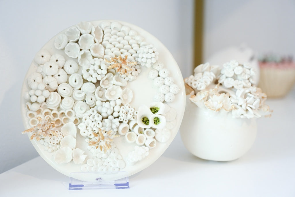 This intricate handcrafted ceramic sculpture is inspired by the delicate textures and forms of coral reefs. Perfect as a statement art piece for shelves, consoles, or display stands, it brings a sense of calm, coastal sophistication to any space.