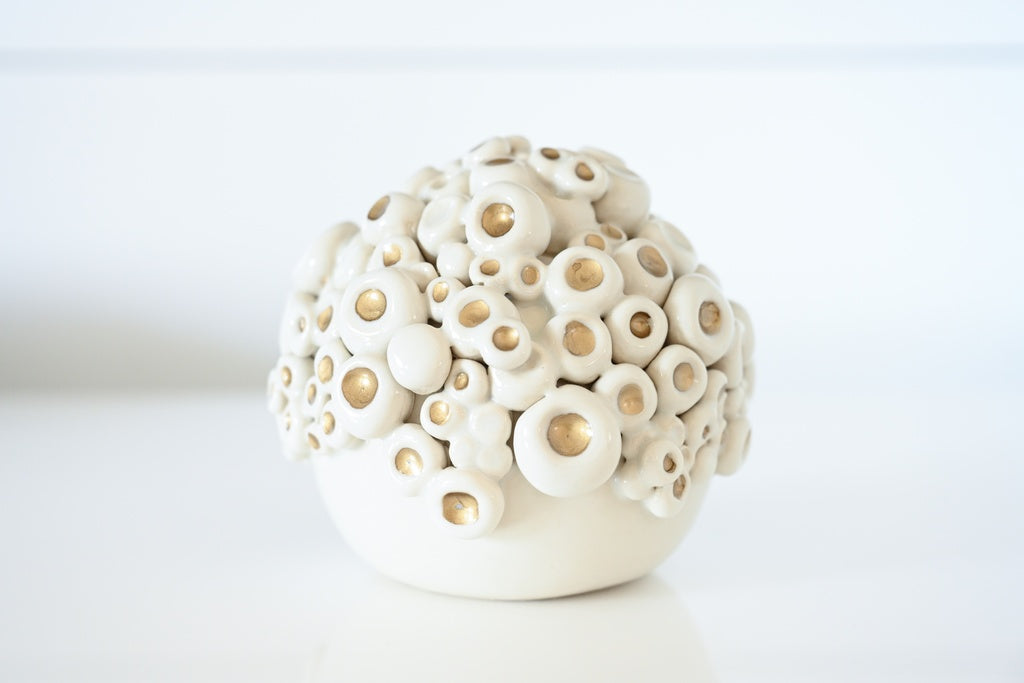 Handcrafted porcelain sculpture featuring smooth organic forms with colored accents. A modern, eye-catching piece perfect for shelves, desks, or coffee tables.