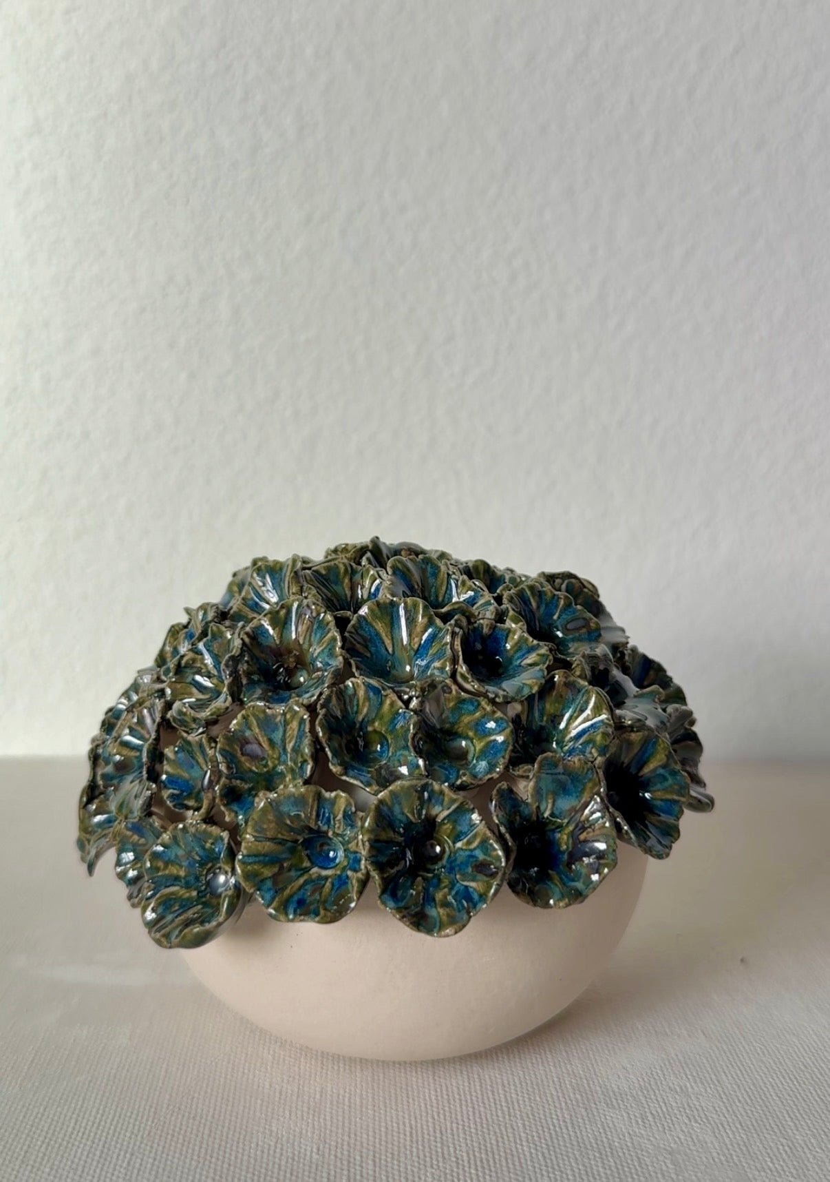 Add an artful statement to your space with this handcrafted ceramic sphere. Each flower-like form is shaped by hand and layered across the surface, creating a sculptural piece that feels both expressive and refined.